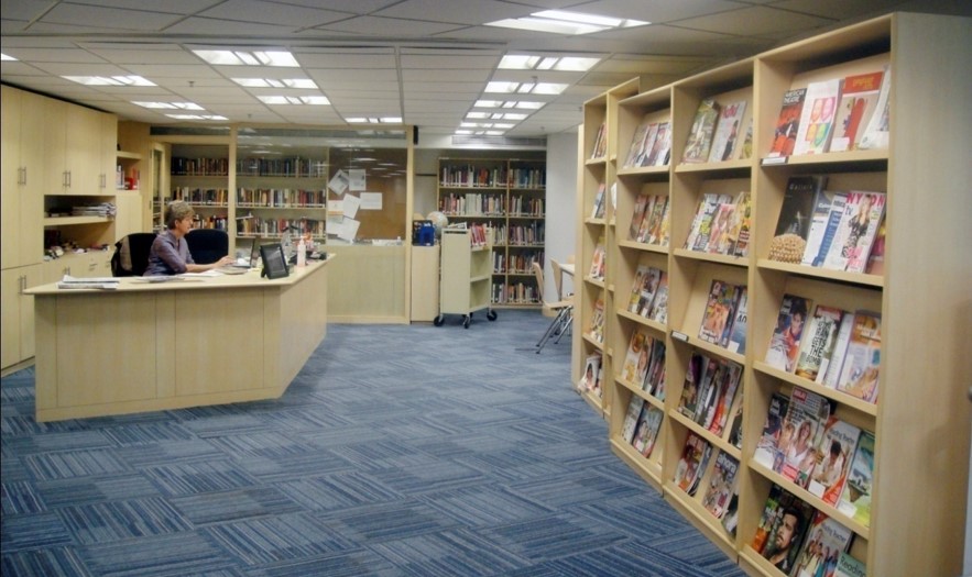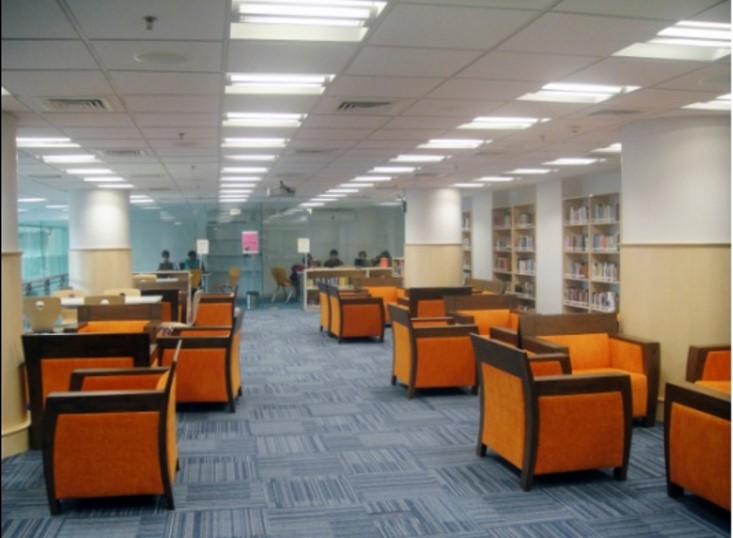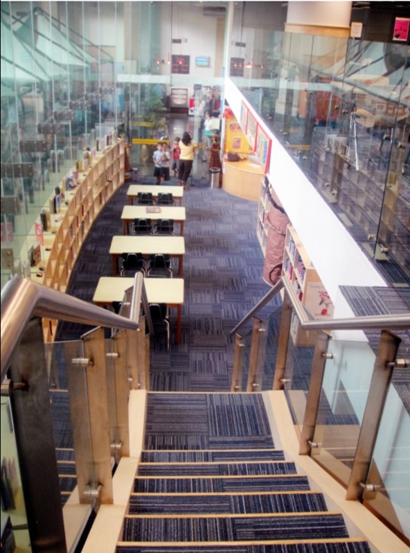 The school library also served as a public library for the parents and the school community. The existing library was on the ground and partly on the mezzanine level. To meet the requirements of the elementary and high school, the mezzanine was extended to increase the area by about 60%.
