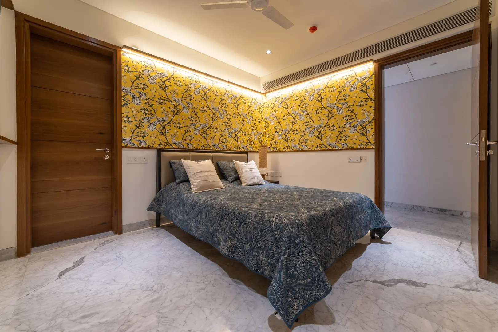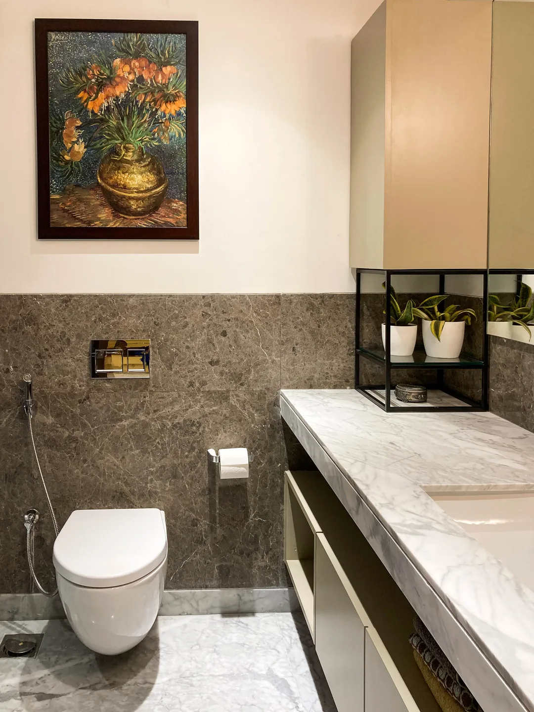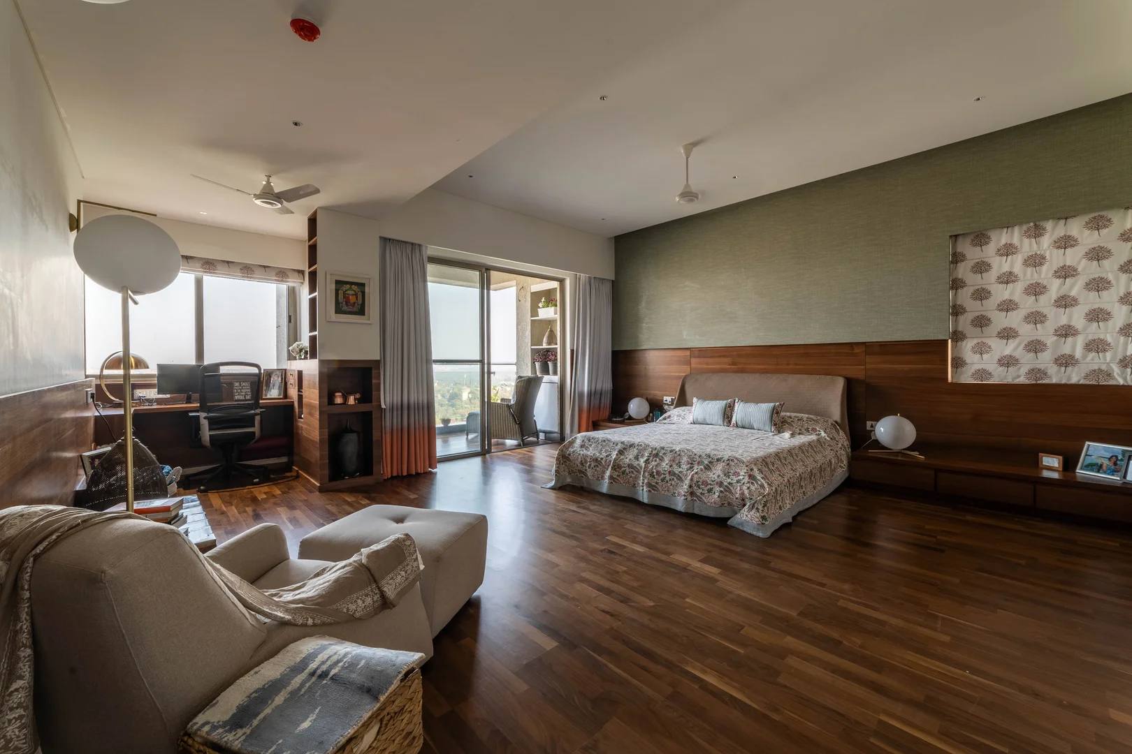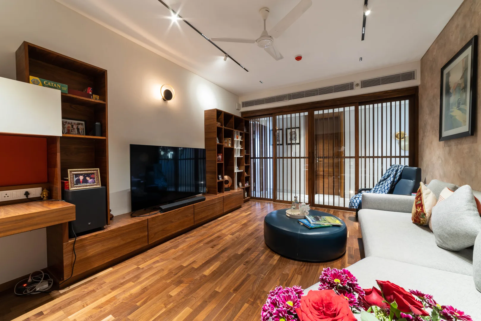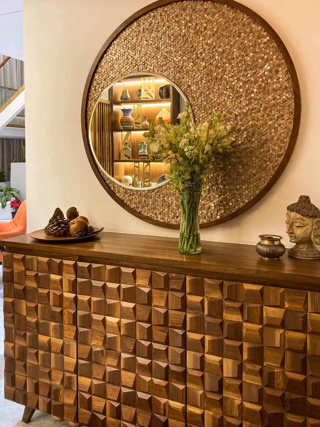 Two apartments on the 14th & 15th floor of this high-rise residential tower in Pune were redesigned as a duplex during the construction phase itself to create a spacious home for the client. Our concept was to design a home of understated elegance with a sense of spaciousness