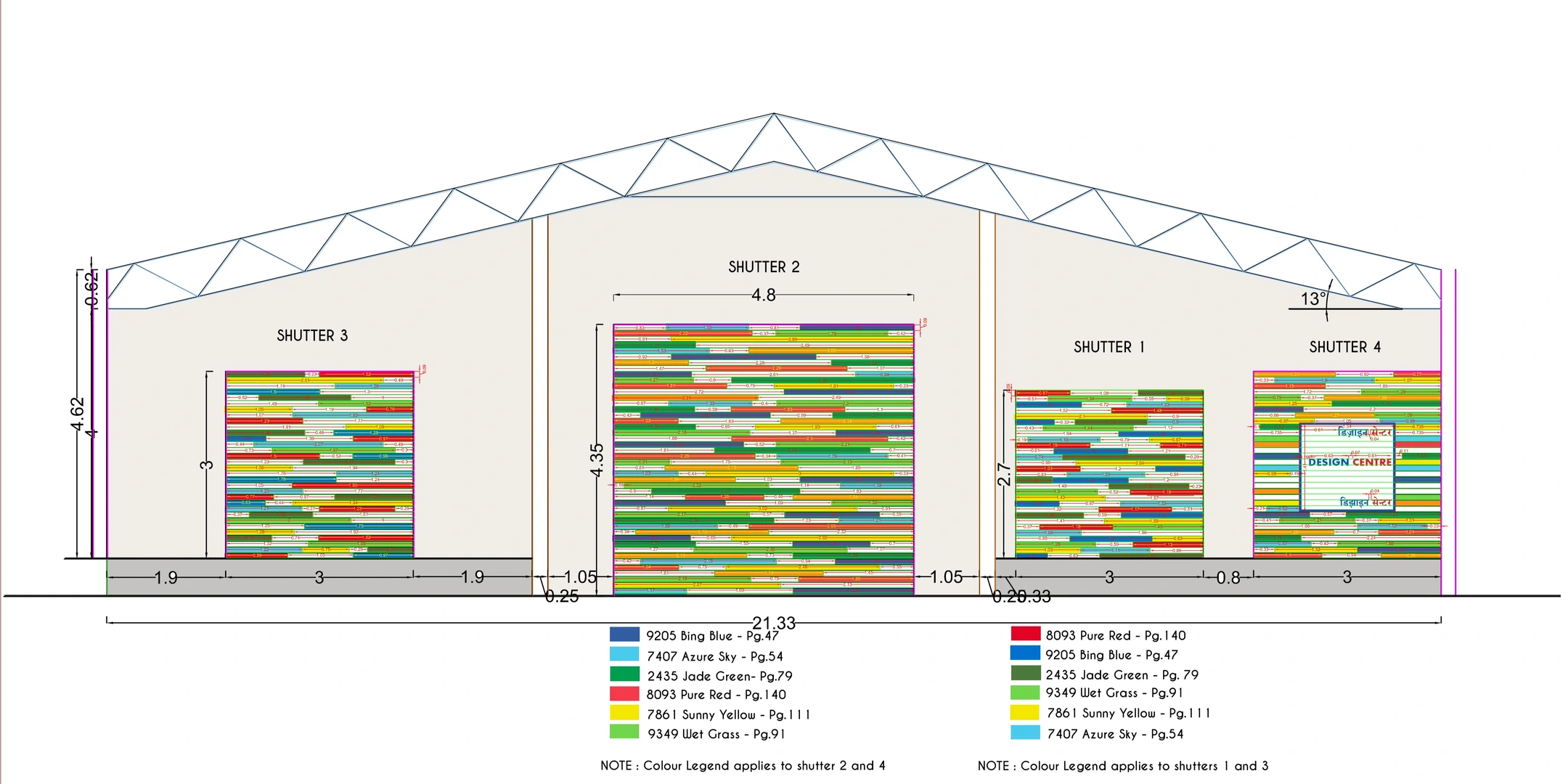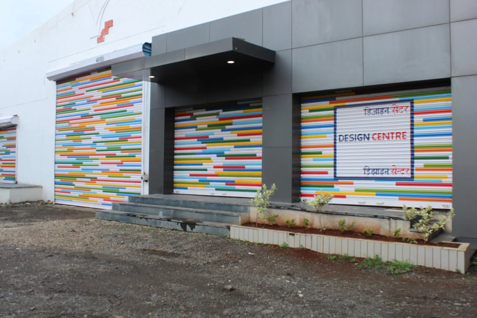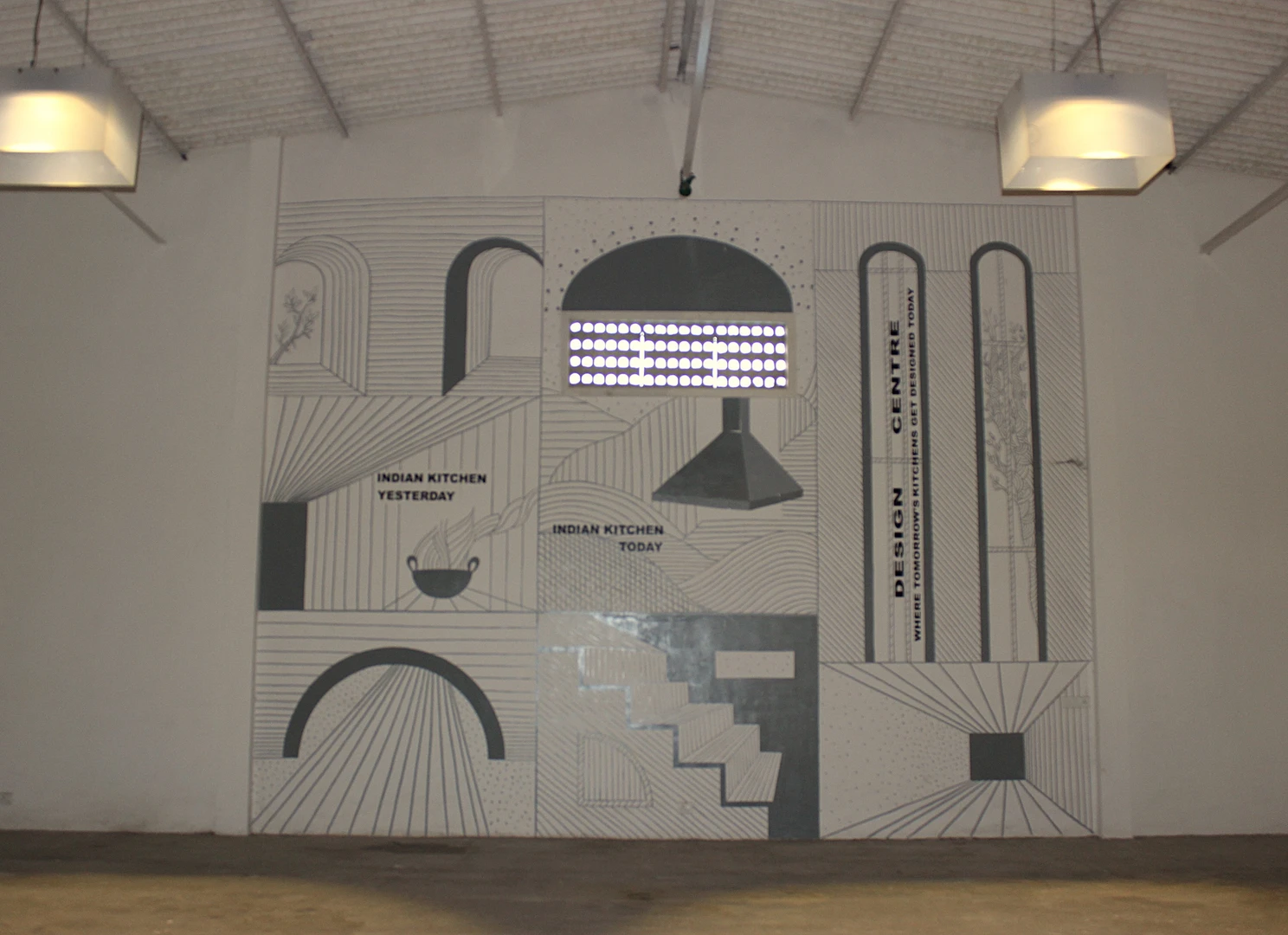 We consulted our friend, Visual artist Atul Dodiya, who has produced several works of art on rolling shutters. He advised us to showcase paint on the shutters, since the parent company of Sleek Kitchens is Asian Paints Ltd. On the exterior of the shutters, we used a series of vibrant colours while the interior of the shutters was painted different shades of grey.