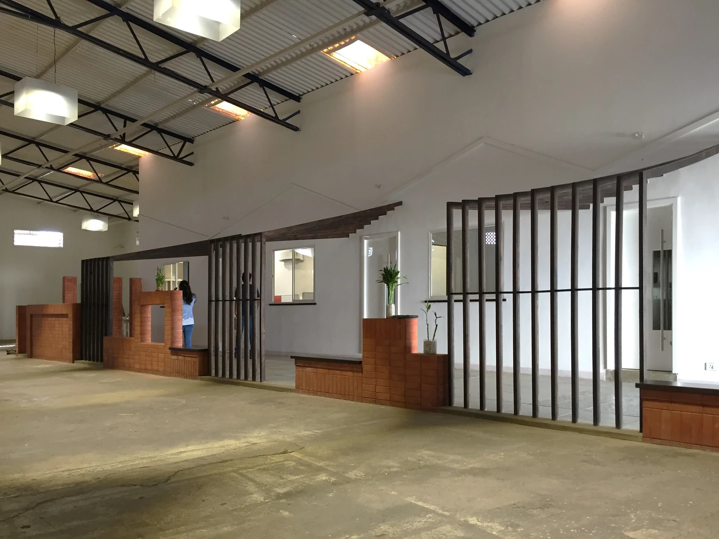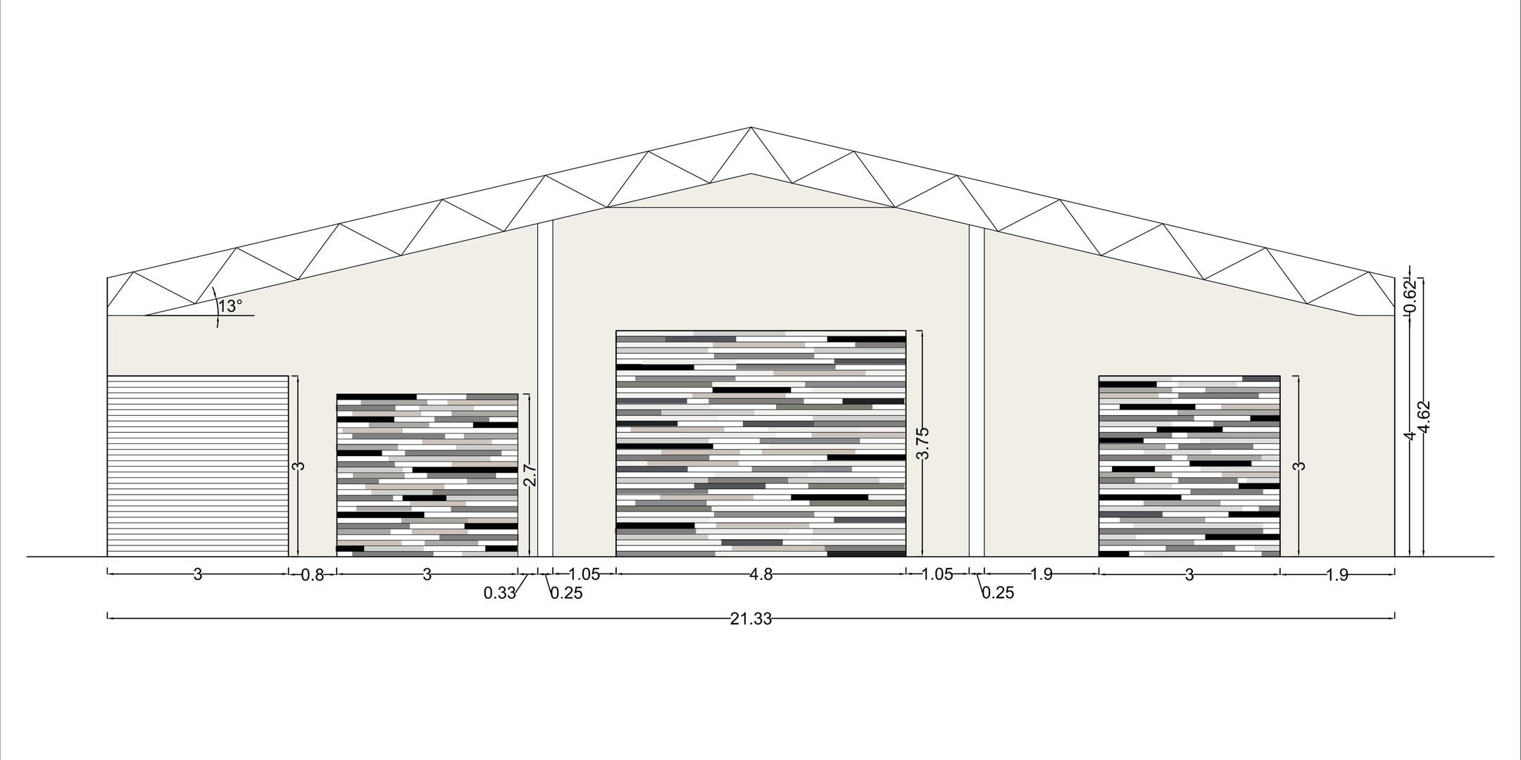 An existing industrial shed with four large rolling shutters was to house these spaces.
