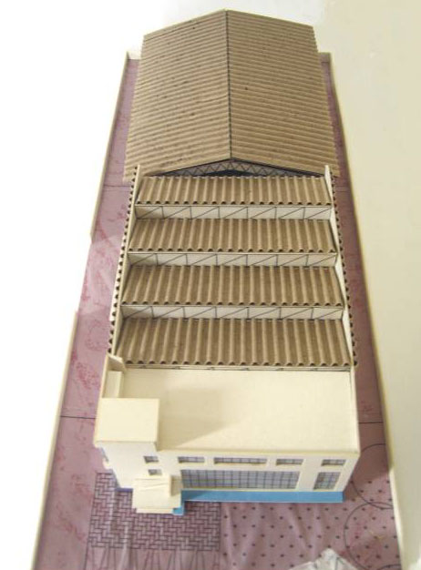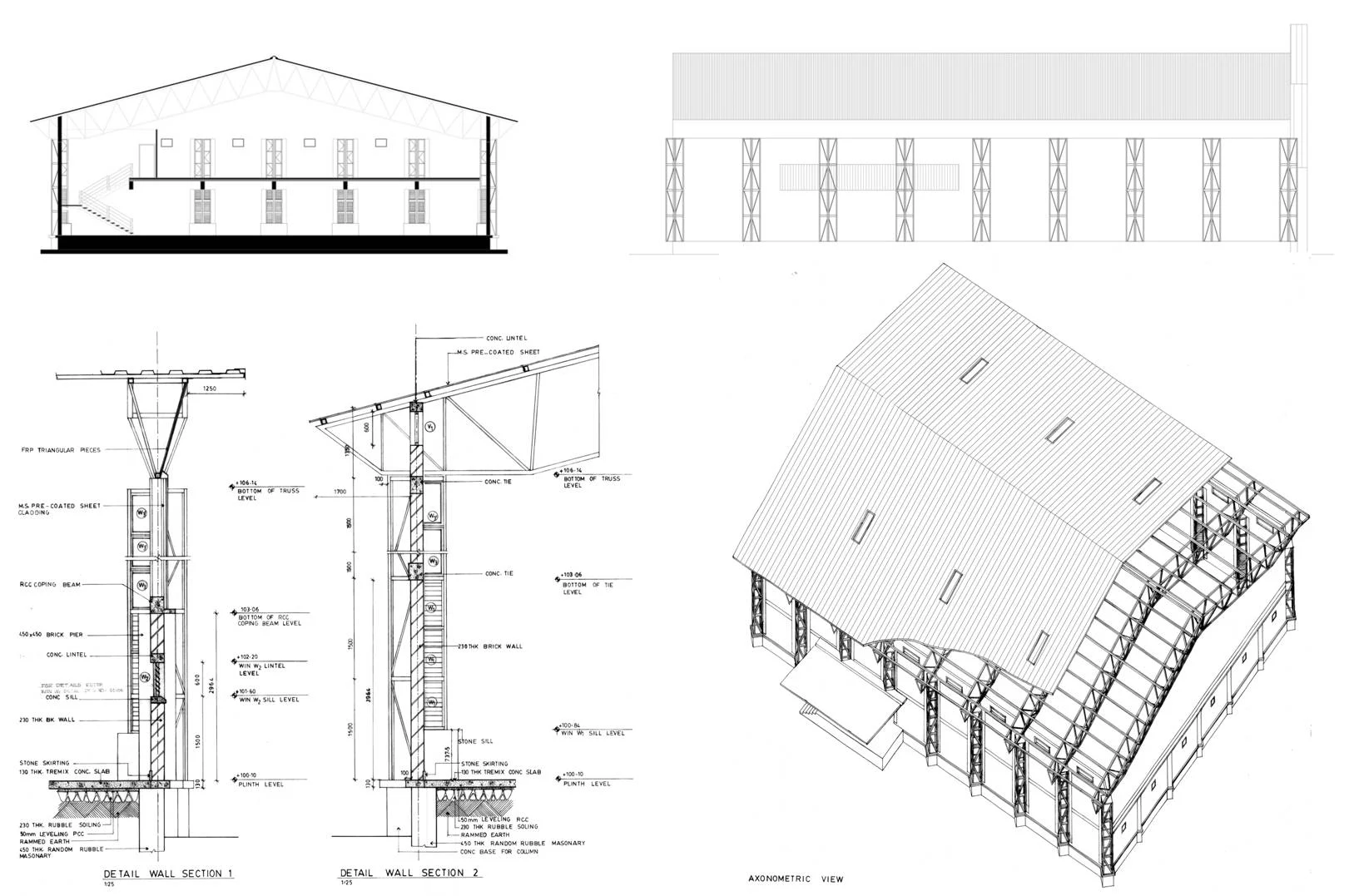 The structural columns along the periphery of the building work as vertical shafts of light with louvers at the lower and upper level. This resulted in a naturally lit interior and the louvers at different height provide air circulation which maintains a comfortable temperature.